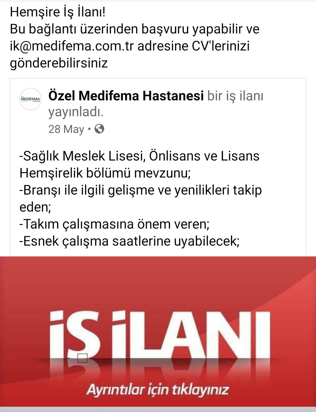 Ozel Medifema Hastanesi On Twitter Hemsire Is Ilani Cv Nizi Ik Medifema Com Tr Adresine Gonderebilirsiniz Detayli Bilgi Icin Sosyal Medya Hesaplarimizdan Yazabilirsiniz Https T Co I4uouc6wso